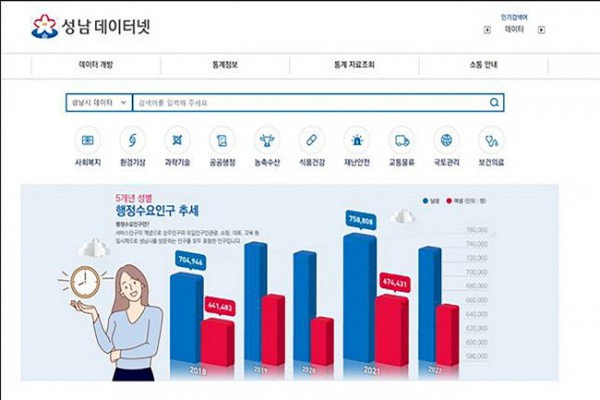 해당 사이트는 성남시가 생성·보유한 행정데이터와 통계 정보를 한 곳에서 확인할 수 있는 통합데이터 시민 개방 창구다.
