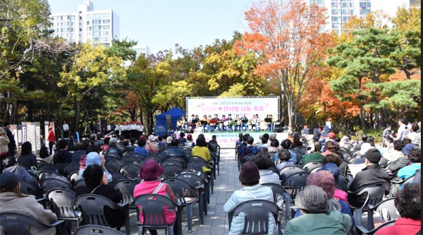 10월 28일 분당동 당골공원에서 열린 분당동주민자치센터 작품발표회 ‘제4회 분당동 큰사랑 나눔 축제’에 참여한 신상진 시장과 박은미 성남시의회 부의장, 김병욱 국회의원과 시·도의원, 지역 경로당 회장 등 내빈들은 축제를 바라보며 이같이 밝혔다.