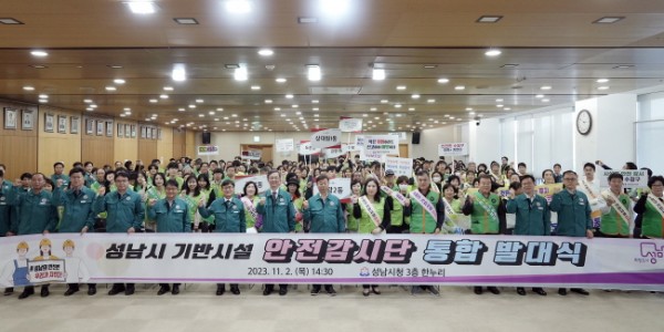 성남시(시장 신상진)는 2일 위기관리 대응력을 강화해 안전사고를 예방하기 위해 ‘성남시 기반시설 안전감시단(이하 안전감시단)’ 통합 발대식을 개최하고 본격 활동에 돌입했다고 밝혔다.