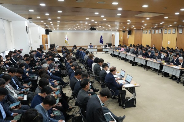 신상진 성남시장은 3일 확대간부회의에서 각 실·국 및 시 산하 공공기관의 2024년도 주요 업무계획에 대해 보고 받았다.