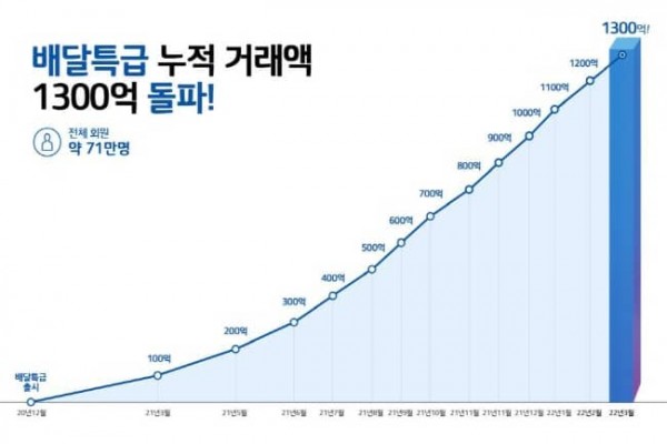 배달특급은 지난 2월 누적 거래액 1,200억 원을 넘어선 이후 한 달 만에 다시 한번 고지를 뛰어넘으며 안정적인 거래액 증가 추이를 나타내고 있다.