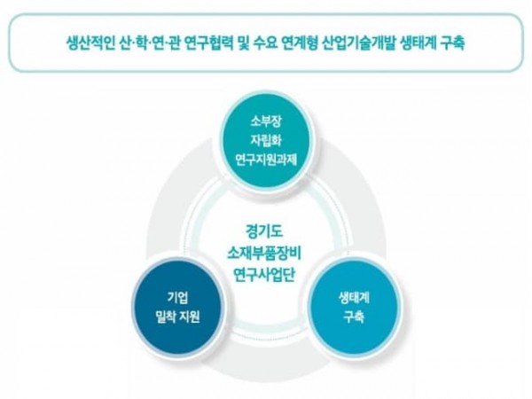 경기도는 지난 2019년 11월 ‘경기도 소재부품산업 육성 조례’를 제정하고, 지방정부 최초로 소재·부품·장비 국산화 기술 육성을 위한 ‘경기도 소재부품장비 연구사업단’을 수원 차세대융합기술연구원(이하 융기원)에 설치해 올해까지 3년간 300억 원을 지원했다.