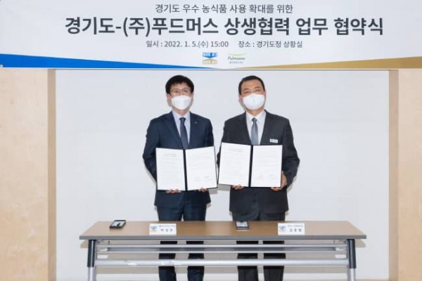경기도는 풀무원 계열 식자재 유통기업 ㈜풀무원푸드머스(이하 ‘㈜푸드머스’)와 지난 5일 경기도청에서 도 생산 우수 농식품 사용 확대를 위해 상생협력 업무협약을 체결했다고 6일 밝혔다.