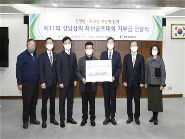 성남상공회의소는 지난 11년 동안 자선골프대회를 통해 누적 후원금 4억8천여만원을 조성하여 환아 171명의 치료비를 지원하였으며, 앞으로도 회원사와 함께 기업의 사회적 책임을 위한 인보사업을 꾸준히 실천해 나갈 계획이다.