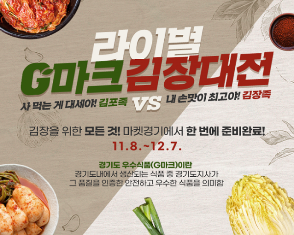 경기도농수산진흥원이 김장철을 맞아 도 농수산식품 온라인몰 ‘마켓경기’에서 12월 7일까지 김치와 김장 원부재료를 합리적인 가격에 판매하는 ‘G마크 김장대전’을 연다.