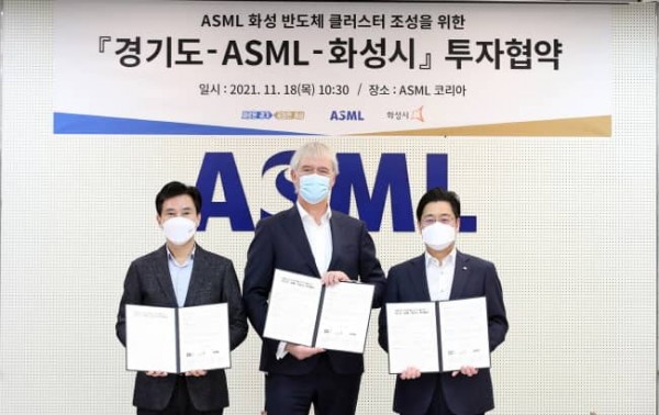 오병권 경기도지사 권한대행, 서철모 화성시장, 피터 베닝크(Peter Wennink) 에이에스엠엘 CEO, 이우경 에이에스엠엘 코리아 대표는 18일 화성시 석우동 ASML코리아에서 이런 내용을 담은 투자협약을 체결하고, 투자와 반도체 부문 인재 양성 등 지역 상생협력을 약속했다. 이날 행사에는 문승욱 산업통상자원부장관, 이원욱 국회의원, 이은주 경기도의회 경제노동위원회 위원장, 황광용 화성시의회 기획행정위원장, 이창한 한국반도체협회 부회장이 참석했다.