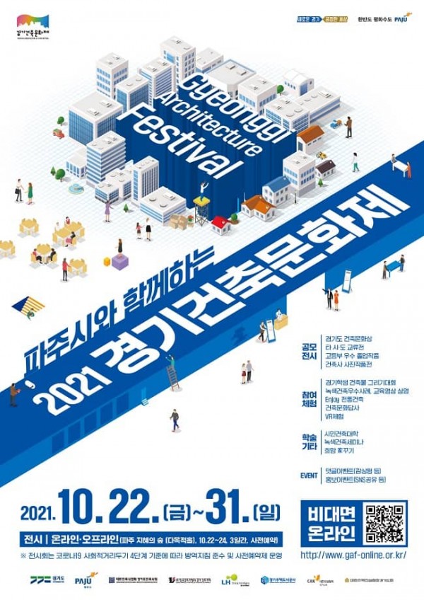 경기도, 파주시, 경기도건축사회 및 건설단체 등 9개 기관 공동 개최인 이번 행사는 코로나19 상황에 따라 경기건축문화제 누리집(gaf-online.or.kr) 및 유튜브 채널(경기건축문화제 검색)을 통해 온라인으로 참여할 수 있다.