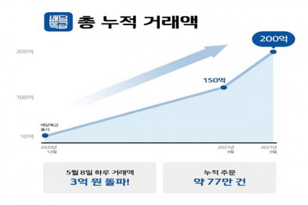 이는 지난 3월 누적 매출 100억 원 달성보다 한 달가량 빠른 속도로, 올해 배달특급이 역량을 집중하고 있는 서비스 지역 확대에 따른 것으로 풀이된다.