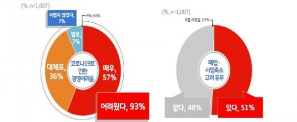 이번 조사 결과를 보면 코로나19 지속 확산으로 자영업·소상공인과 일반도민 모두 어려움을 겪는 것으로 나타났다. 경기지역화폐 가맹점 93%가 ‘코로나19 발생으로 사업장 경영이 어려웠다’고 답했고, ‘폐업 및 사업 축소를 고려했다’는 응답도 51%로 나타났다.