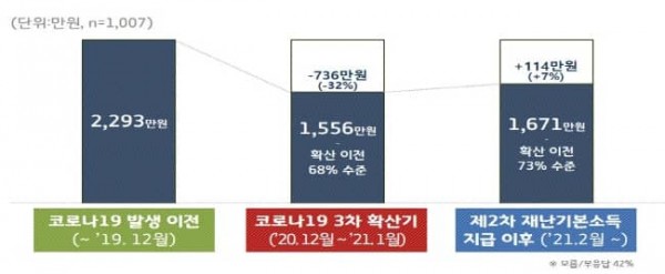 - 제2차 재난기본소득 지급 후 코로나19 이전 매출액의 73% 수준 회복 추정