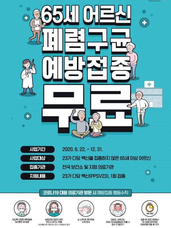 65세 이상 어르신의 경우 1회 접종만으로도 폐렴구균 감염에 의한 패혈증이나 뇌수막염 등의 합병증을