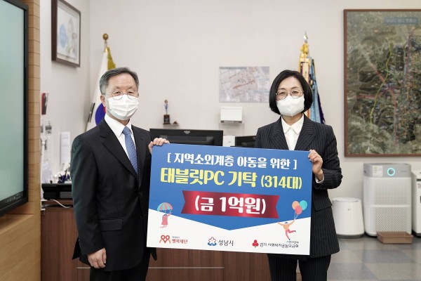 마이다스행복재단이 소외계층 아동을 지원하고자 10월 29일 성남시에 1억원 상당의 태블릿 PC 314대를 맡겼다.