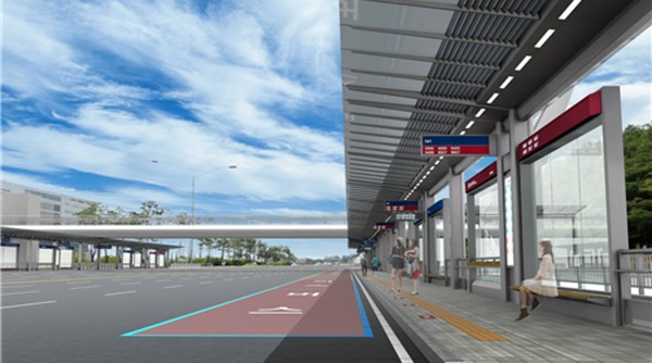 107m 규모의 대형 쉘터가 들어서며, 버스전용차로와 7면의 정차면을 표시해 승용차와 버스 이용 차로를 명확히 구분한다.