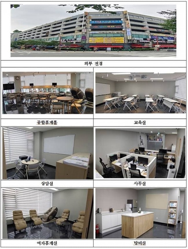 이번에 문을 연 부천쉼터는 이동노동자들의 접근성, 주변 교통 여건 등을 고려해 총 3억8,000만원의 사업비를 들여 상동역, 중동IC와 인접한 부천시 소향로 37번길 19, 3층에 총 198.655㎡(약 60평) 규모로 문을 열었다.