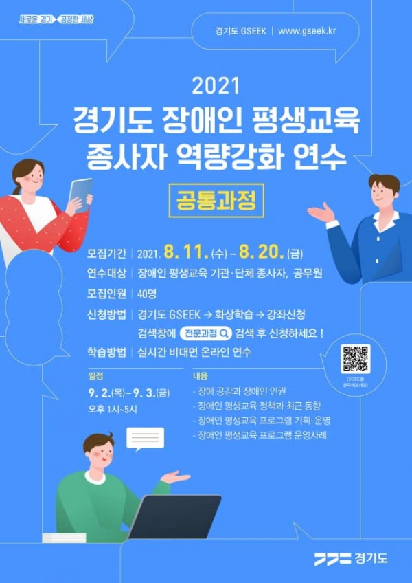 경기도가 ‘장애인 평생교육 종사자 역량강화 온라인 연수’ 참가자를 8월 11일부터 20일까지 모집한다.
