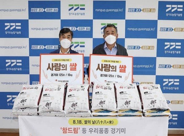 경기도농업기술원과 경기도쌀연구회는 지난 2017년부터 매년 ‘쌀의 날’에 ‘사랑의 쌀 전달식’을 열고 1,800~2,400kg의 쌀을 도내 사회복지 시설에 기증해 왔다.
