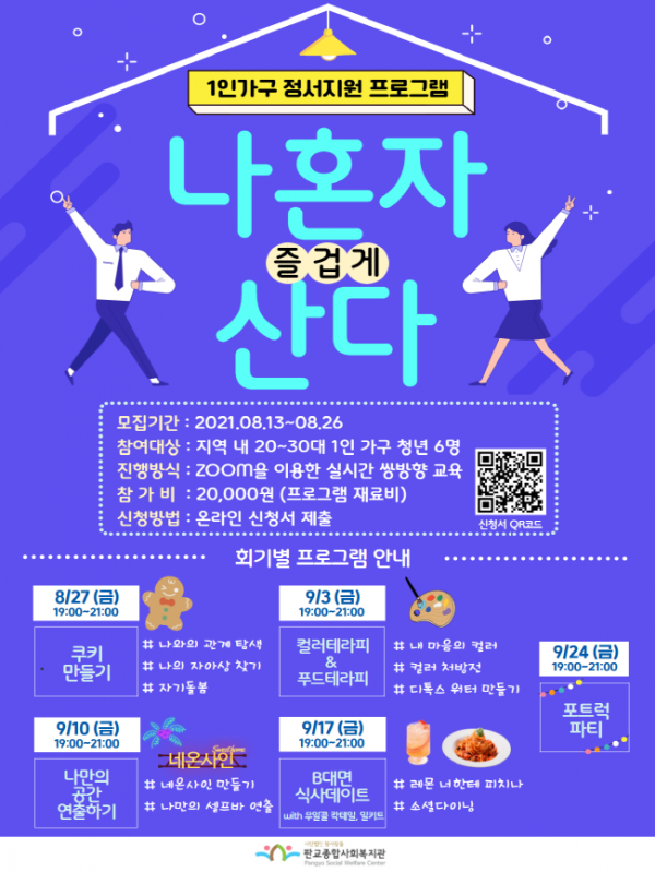 판교종합사회복지관에서는 코로나19 장기화로 우울감 및 외로움을 겪고 있는 20·30대 1인가구 청년들의 정서적 지원을 위해 ‘나혼자(즐겁게)산다’를 진행한다.
