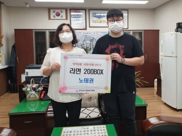 성남시 분당구 정자2동 행정복지센터에서 사회복무요원으로 근무 중인 노태권(26) 씨는 코로나19로 유난히 힘든 시기를 겪고 있는 이웃들을 돕고자 라면 200박스를 기부했다.