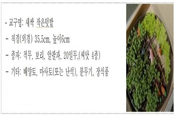 소통 체험 프로그램은 ‘새싹 미니텃밭 만들기’이며 참가자가 농업인이 되어 직접 텃밭을 구획해 새싹보리, 무 등의 종자를 심으며 새싹채소의 영양, 먹는 방법, 식물생리 등에 대해 자연스레 알아가는 과정이다.