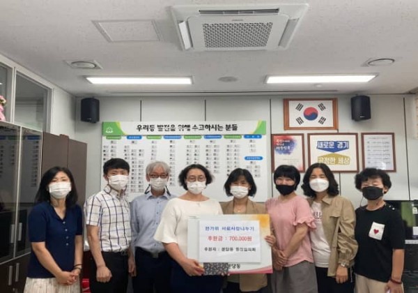 또한, 분당동 통장협의회에서 9월 15일 정기회의를 개최하고 회의참석수당 70만원을 기탁하며 분당동 주민 모두 즐겁고 행복한 추석 명절이 되기를 바라는 마음으로 35명 통장 전원이 기쁜마음으로 기탁했다고 송금희 통장협의회 회장은 말했다.