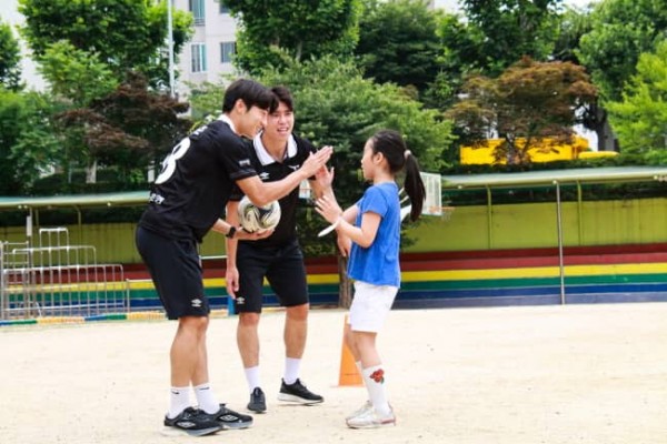 정한민과 김원준은 뜨거운 반응을 미리 전해 들었다며 큰 기대를 안고 도착했다. 중탑초 학생들은 더운 날씨에도 선수들에게 축구를 배우고 같이 뛰며 열정적인 모습을 보였다.